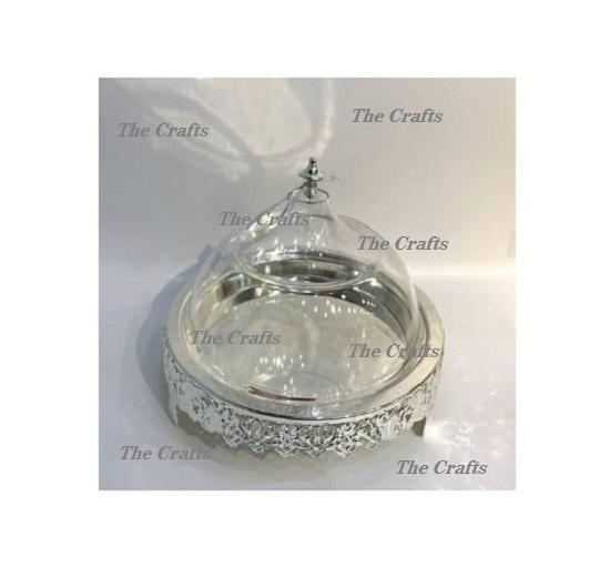 Soporte para servir pasteles de color dorado de acero inoxidable con cúpula de vidrio Soporte para postres de chocolate de mejor diseño con cúpula