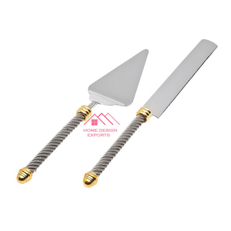 Juego de cuchillos y servidores para pasteles para bodas, restaurantes, hoteles, uso 2025, superventas, mango de diseñador hecho a mano de Metal