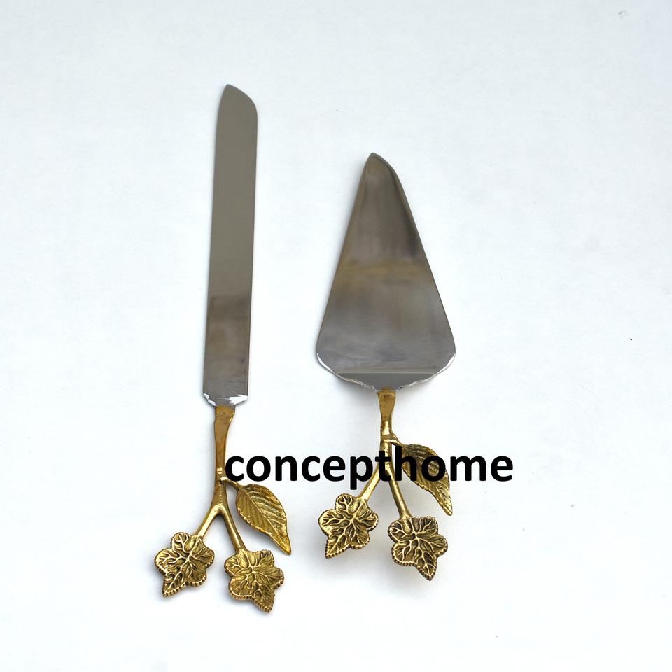 Juego de utensilios para servir pasteles personalizados, redondos, de acero inoxidable, ecológicos, hechos a mano, soporte para pasteles, cuchillo para plato de flores, etiquetado privado