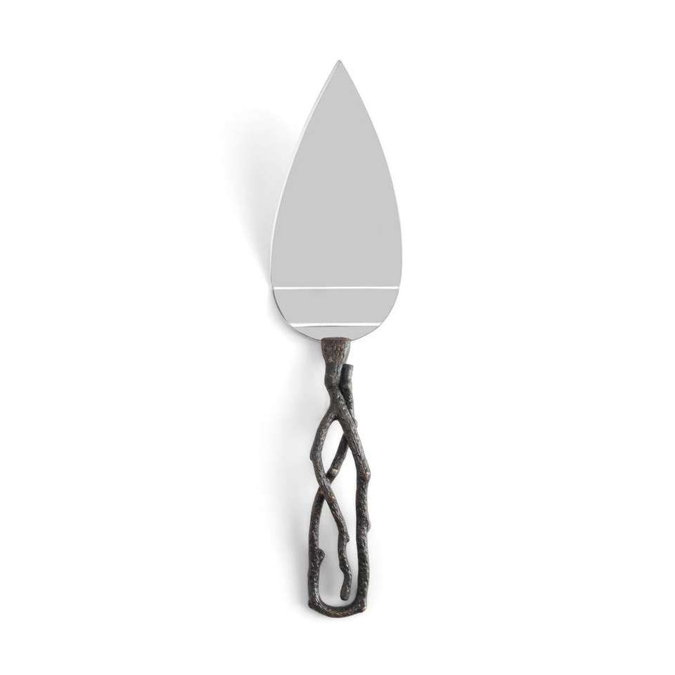 Servidor de Pastel con Mango de Rama Rústica, Diseño Inspirado en la Naturaleza en Acero Inoxidable Espejo, Perfecto para Cenas Elegantes y Ocasiones Especiales