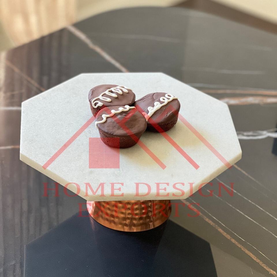 Soporte de pastel con parte superior de mármol y Base de metal Soporte de pastel decorativo Base martillada a mano Soporte de pastel superior de mármol Metal personalizado