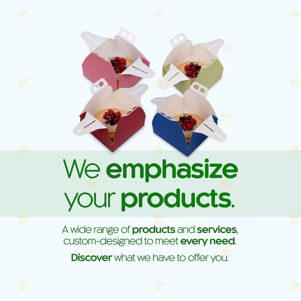 Caja para pasteles hecha de cartón estirado de celulosa pura GC2 gris mate en el exterior y acabado natural blanco en el interior