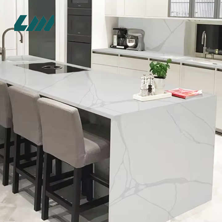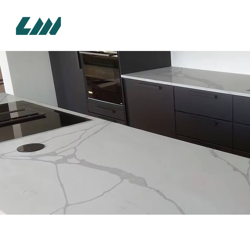 Encimeras de cocina de losa de cuarzo con piedra de cero cilicon Ingeniería de la serie Calacatta