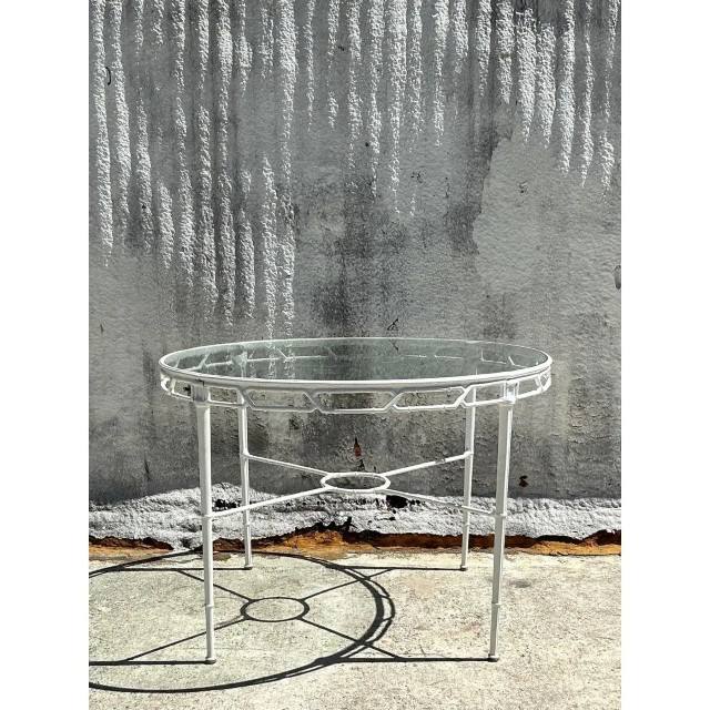 Mesa de comedor redonda de cristal para Patio exterior de Calcuta, marco de hierro forjado blanco Vintage, muebles de terraza para jardín