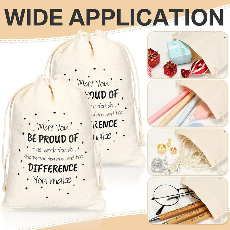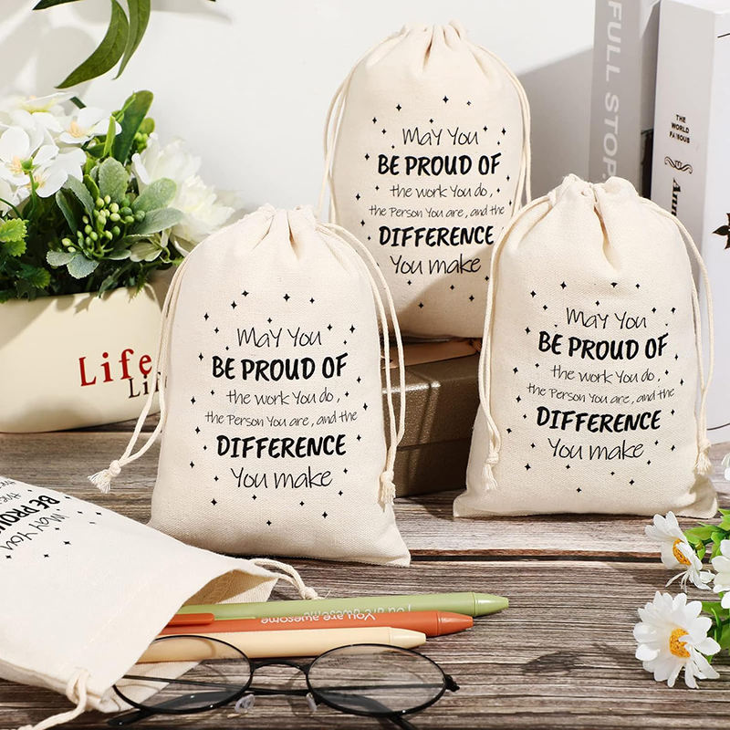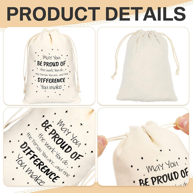 Calico Gracias Bolsas de regalo Cordón de algodón Equipo Bolsas de regalo para el aniversario del empleo