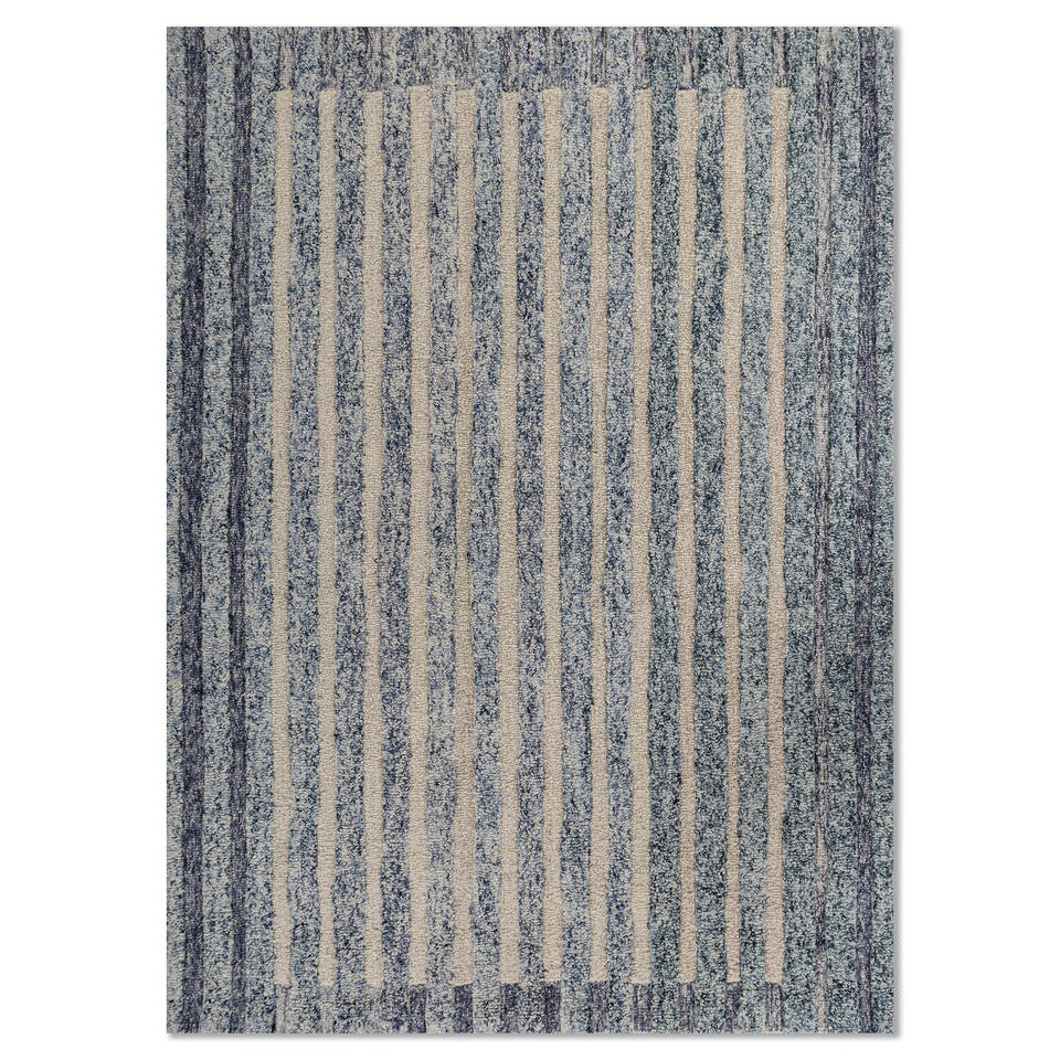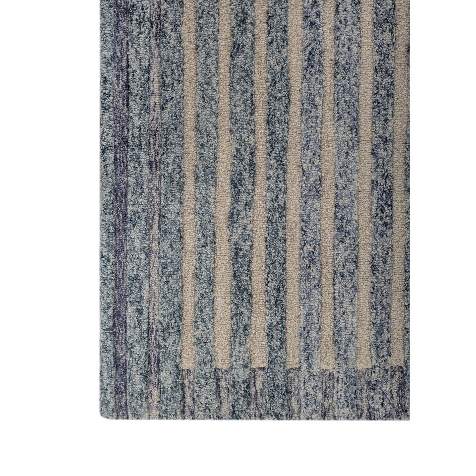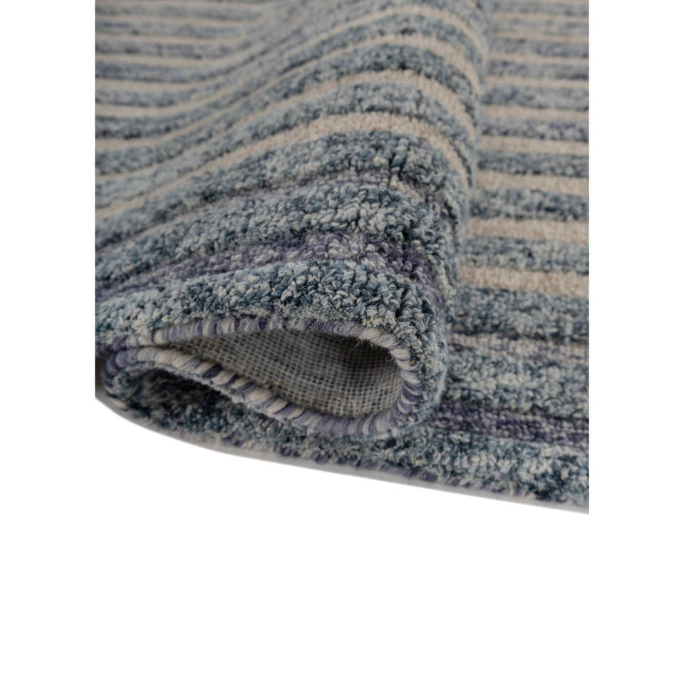 Alfombra de Lana Caliedo a Rayas Azules, Hecha a Mano, Rectangular de 9x12, para Entrada, Sala de Estar, Pasillo, 10 mm de Grosor, Material Viscosa