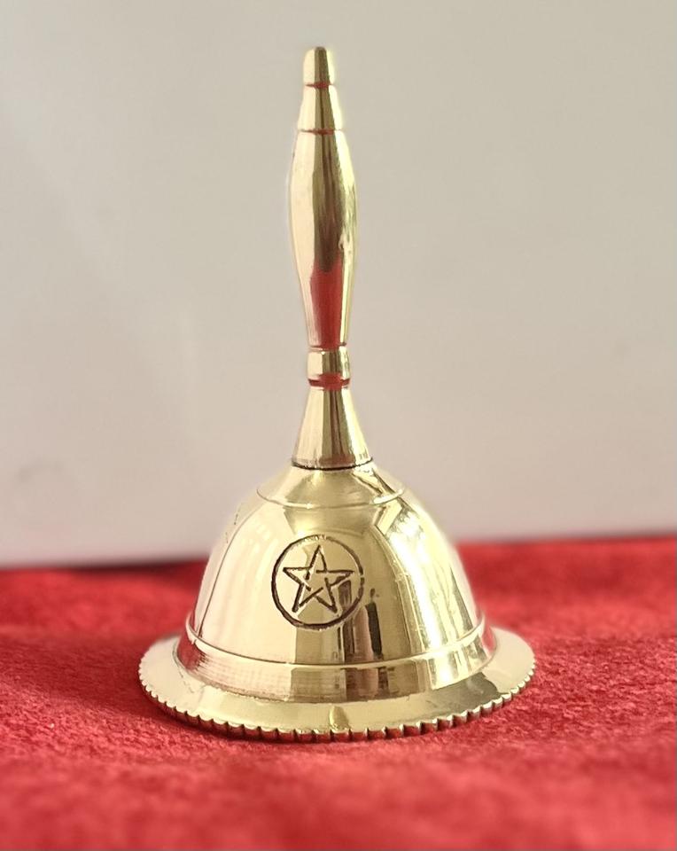 Campana de Altar Pandulam con Pentagrama para Oración, Campana de Latón de 3 Pulgadas, Campana de Altar de Latón por Indian Consigners