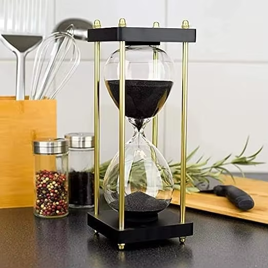 Calvin Handicrafts 10 pulgadas hermoso temporizador de arena náutico Base de madera hecha a mano con arena negra 30 minutos reloj de arena