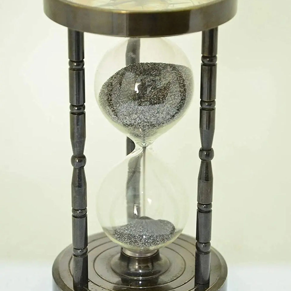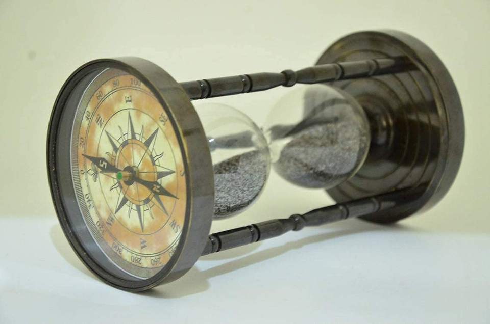Calvin Handicrafts Royal Nautical Brass Hecho a mano 5 minutos Temporizador de arena Brújula única Reloj de arena para ocasiones de cumpleaños