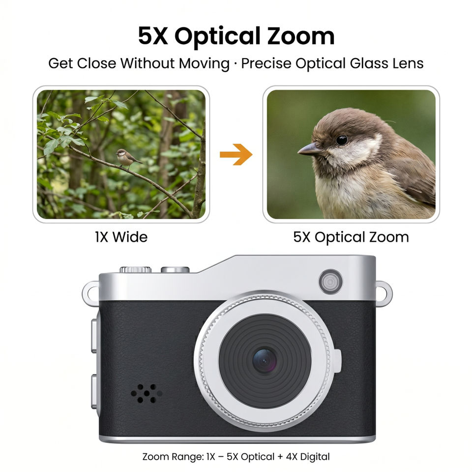 Cámara Digital Compacta Retro de 64MP, 2.5K, 1440P, 11 Filtros, Selfie, TF 128GB, Ligera, de Bolsillo, para Niños