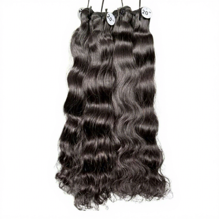 Cabello Indio de Primera Calidad con Trama Simple | Cabello Remy con Ondas Profundas | Color Natural | Textura Suave y Elástica | Extensiones de Cabello Tejidas a Mano Sin Enredos al Por Mayor