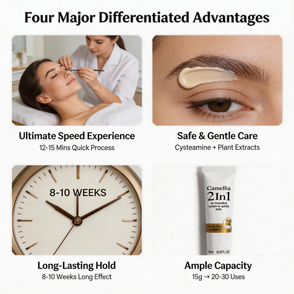 Camellia 2 en 1 Crema Moldeadora - Tratamiento 2 en 1 para Pestañas y Cejas, Rizado Rápido y Duradero