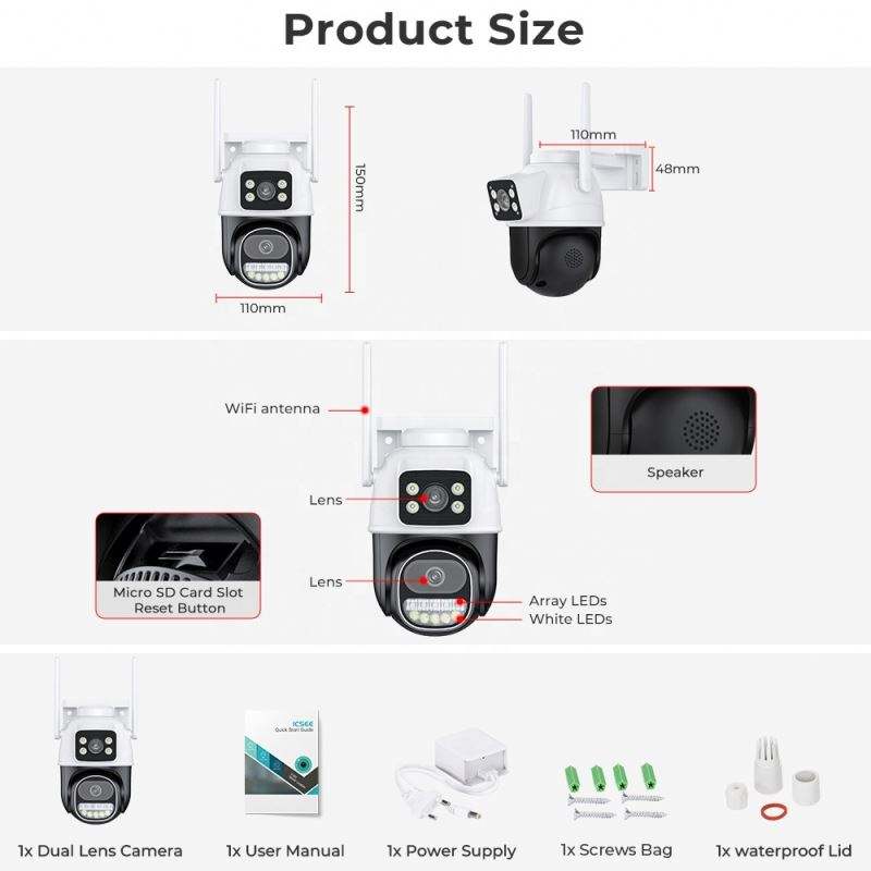 Humanos de seguimiento de movimiento, Visión nocturna, Detección de movimiento, Impermeable / a prueba de mal tiempo, PAN-TILT, De Audio de dos víasCaracterísticas especiales