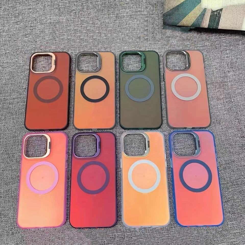 Funda Protectora para Teléfono Móvil con Soporte Magnético para Lentes de Cámara, Diseño de Lujo con Degradado de Color para Modelos 11-16