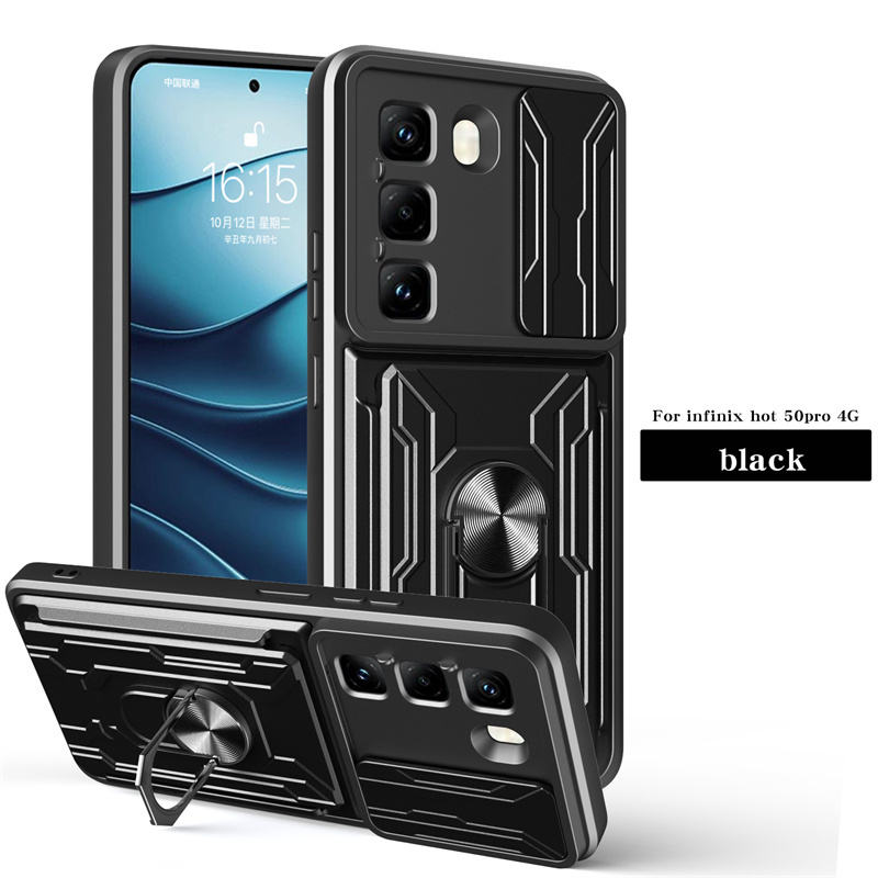Funda protectora para teléfono con soporte de anillo a prueba de golpes para cámara con tarjetero funda de teléfono con armadura de bolsillo para Infinix Hot 50 Pro 4G