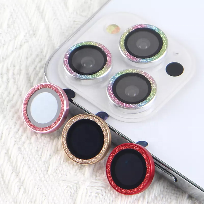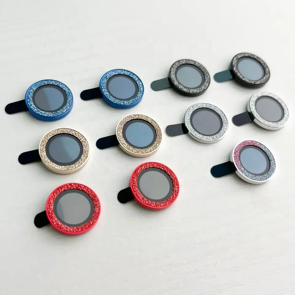 Protector de cámara para iPhone 16 15 14 13 12 11 Pro Max Cámara trasera Cubierta de anillo de metal Pantalla de lente de cámara de diamante brillante colorido