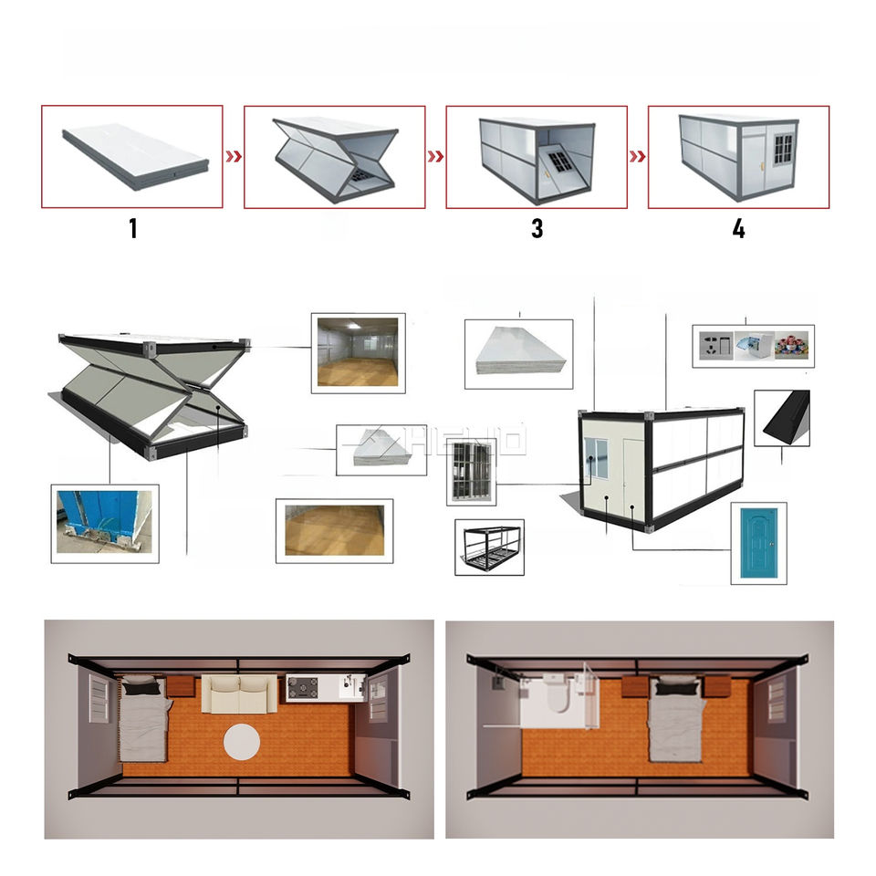 Cammi House Casa Contenedor Modular Plegable Económico de 20 pies, Casa Móvil Pequeña para Campamento de Refugiados Temporal, Dormitorio, Tienda