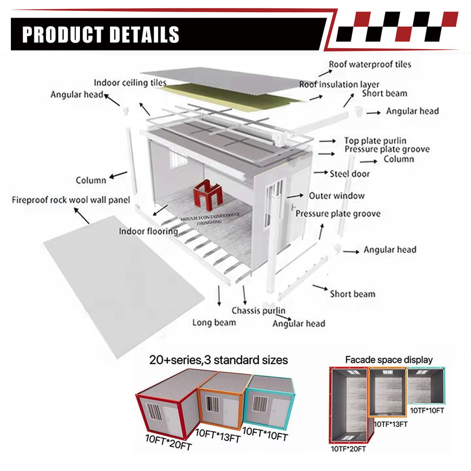 Cammi House Contenedor Modular Oficina Pequeño Contenedor Desmontable Casas Paquete Plano Contenedor Casa Plegable Hogar Hotel o Escuela