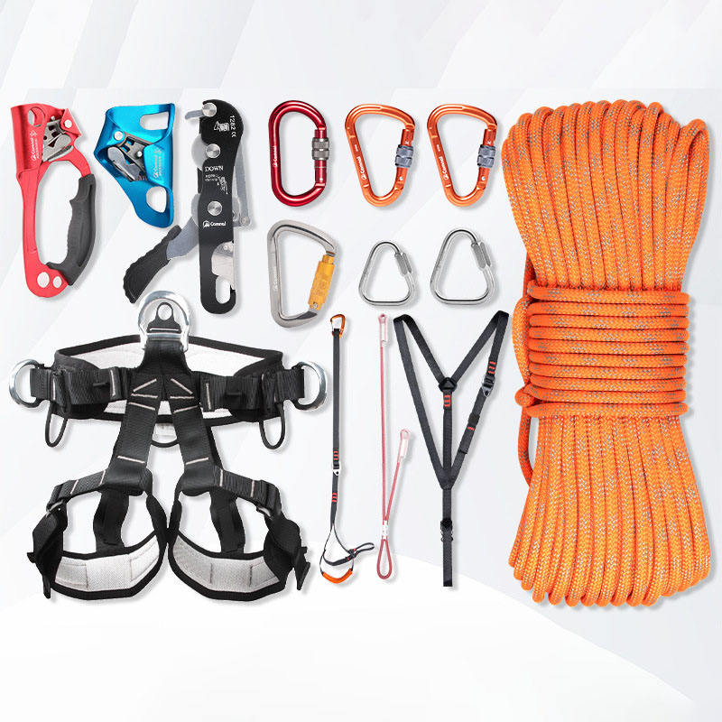 Kit de Cuerdas Dobles Camnal, Arnés de Seguridad de Cuerpo Completo, Mosquetón, Casco, Ascendedor, Descensor, Anticaídas, Equipo de Escalada, Protección