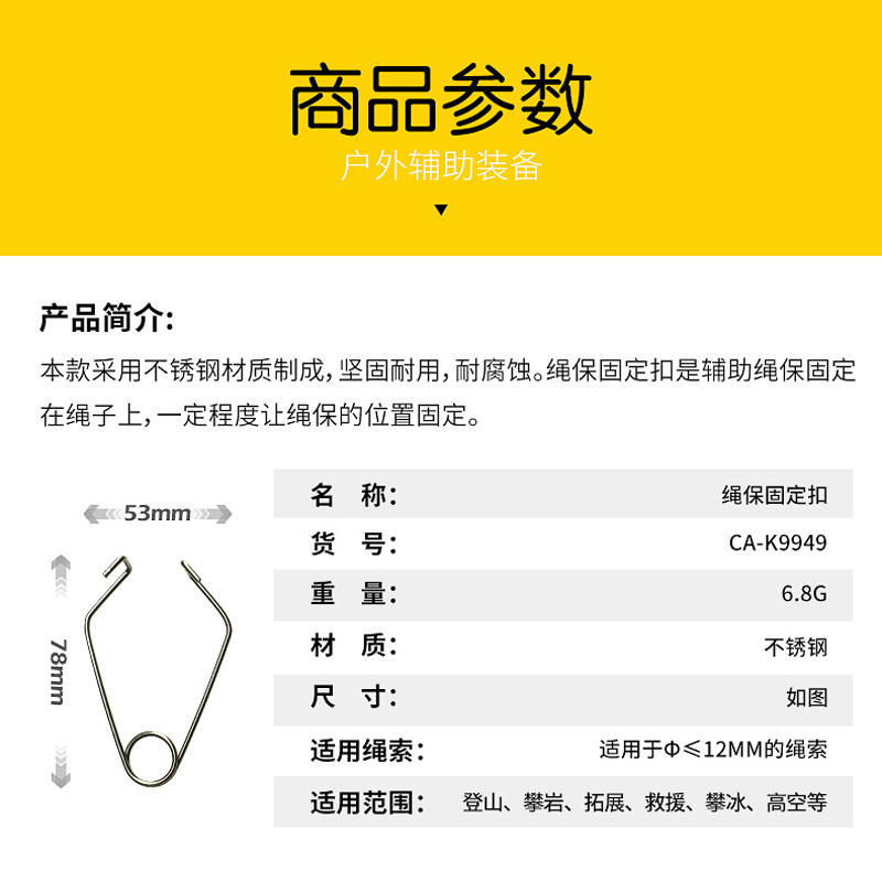 Funda Protectora de Cuerda Camnal de Acero Inoxidable con Forma de Pez para Equipo de Escalada, Espeleología y Canyoning