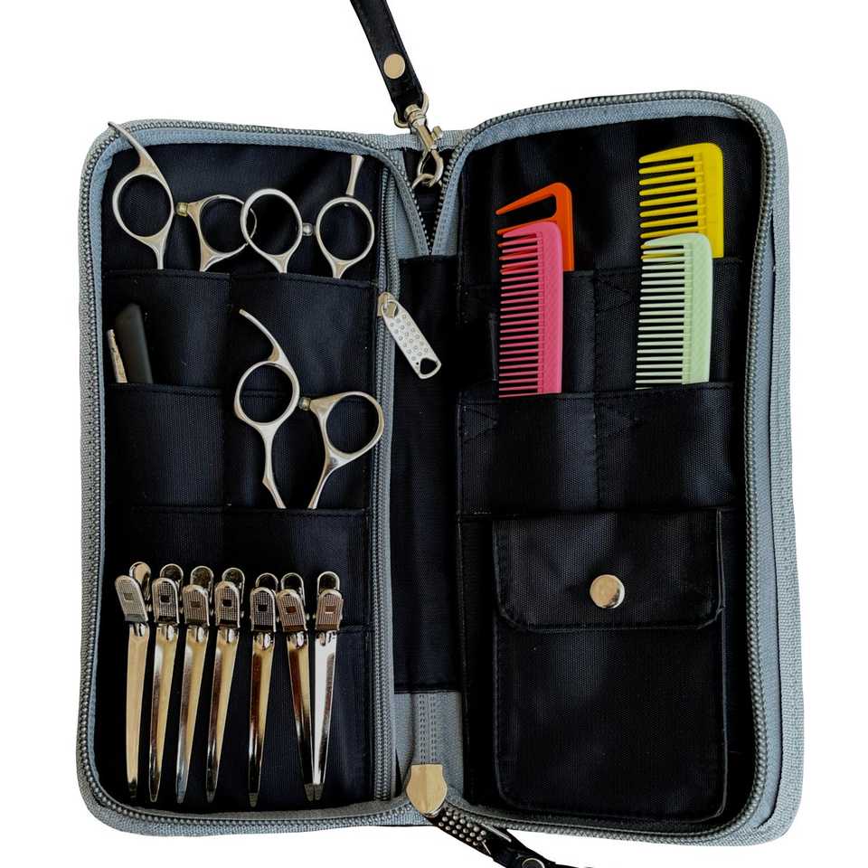 Funda con cremallera para tijeras de camuflaje, herramientas de salón de calidad superior, peines, soporte para cortapelos, 12 tijeras, bolsillos, funda con logotipo personalizado
