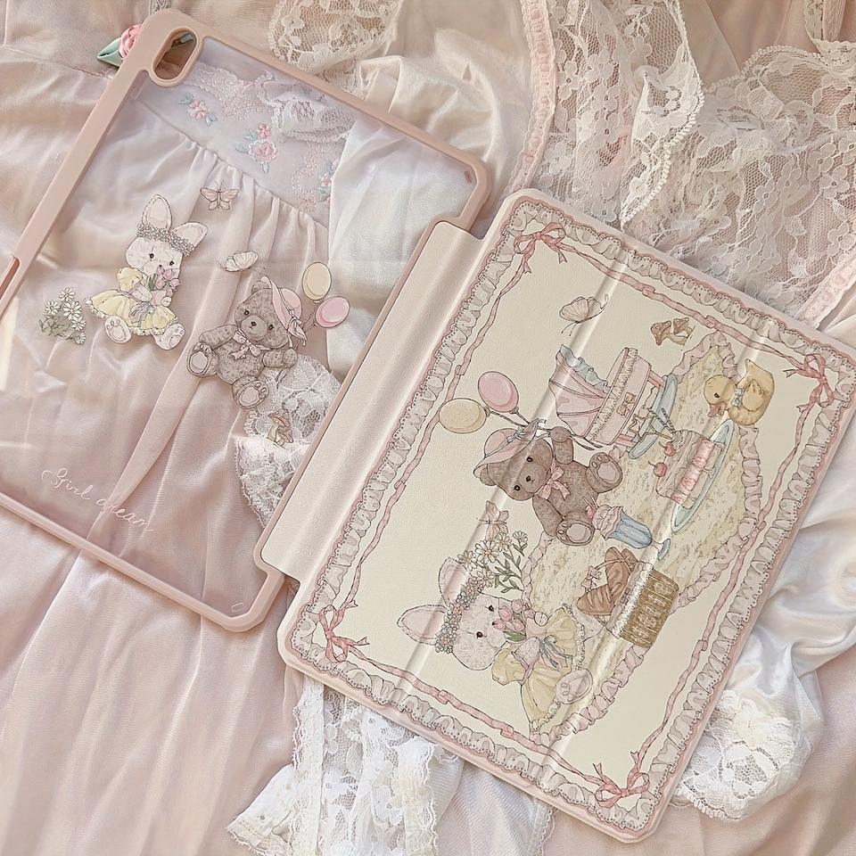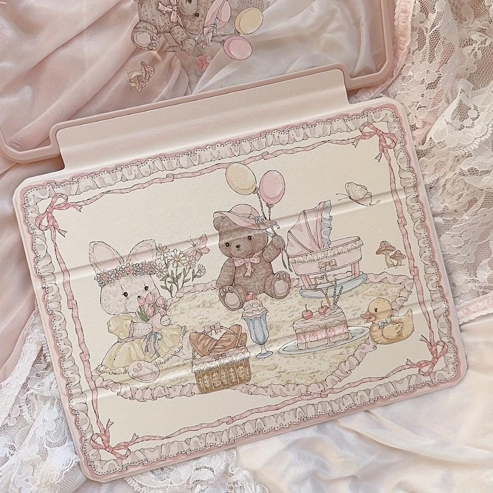 Funda Acrílica con Diseño de Oso y Conejo para iPad Pro 2024 Air 6/5/4 7/8/9 13 Pulgadas
