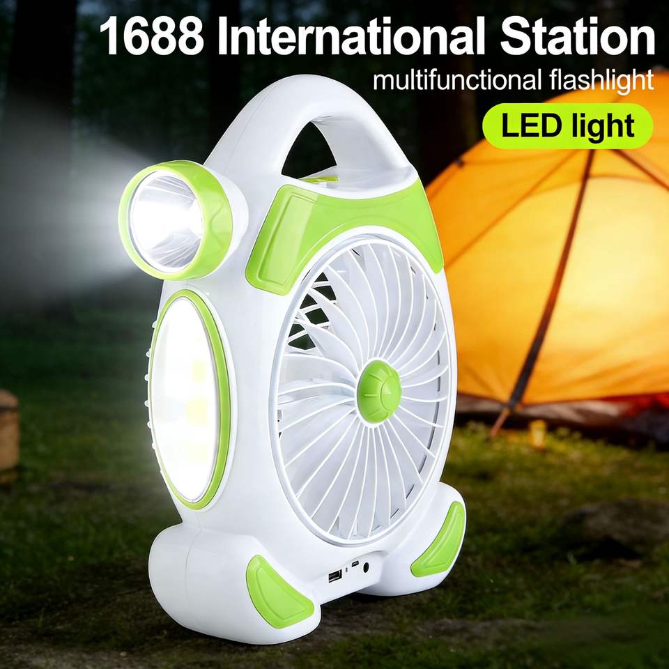 Ventilador de Camping con Linterna LED, Ventilador USB Portátil con Luz y Gancho para Tienda de Campaña, Ventilador de Emergencia para Exteriores, Banco de Energía para Senderismo y Pesca