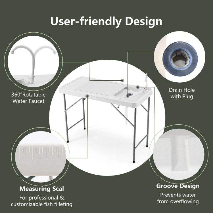 Mesa de Limpieza de Pescado para Camping, Diseño Plegable Portátil con Fregadero y Grifo para Picnics en el Muelle