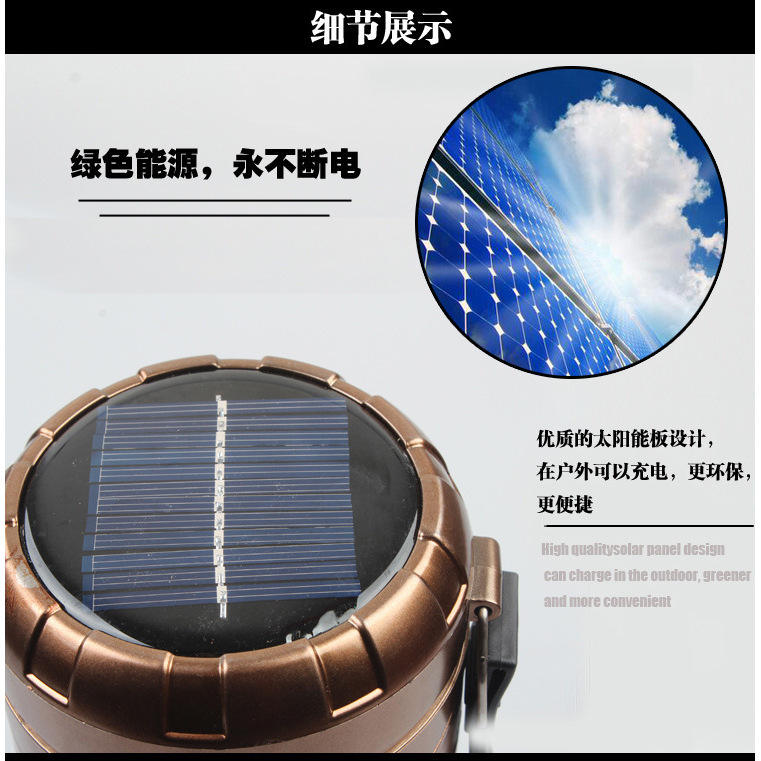 Linterna de camping LED con energía solar, iluminación portátil para exteriores, aleación de aluminio con asa para camping