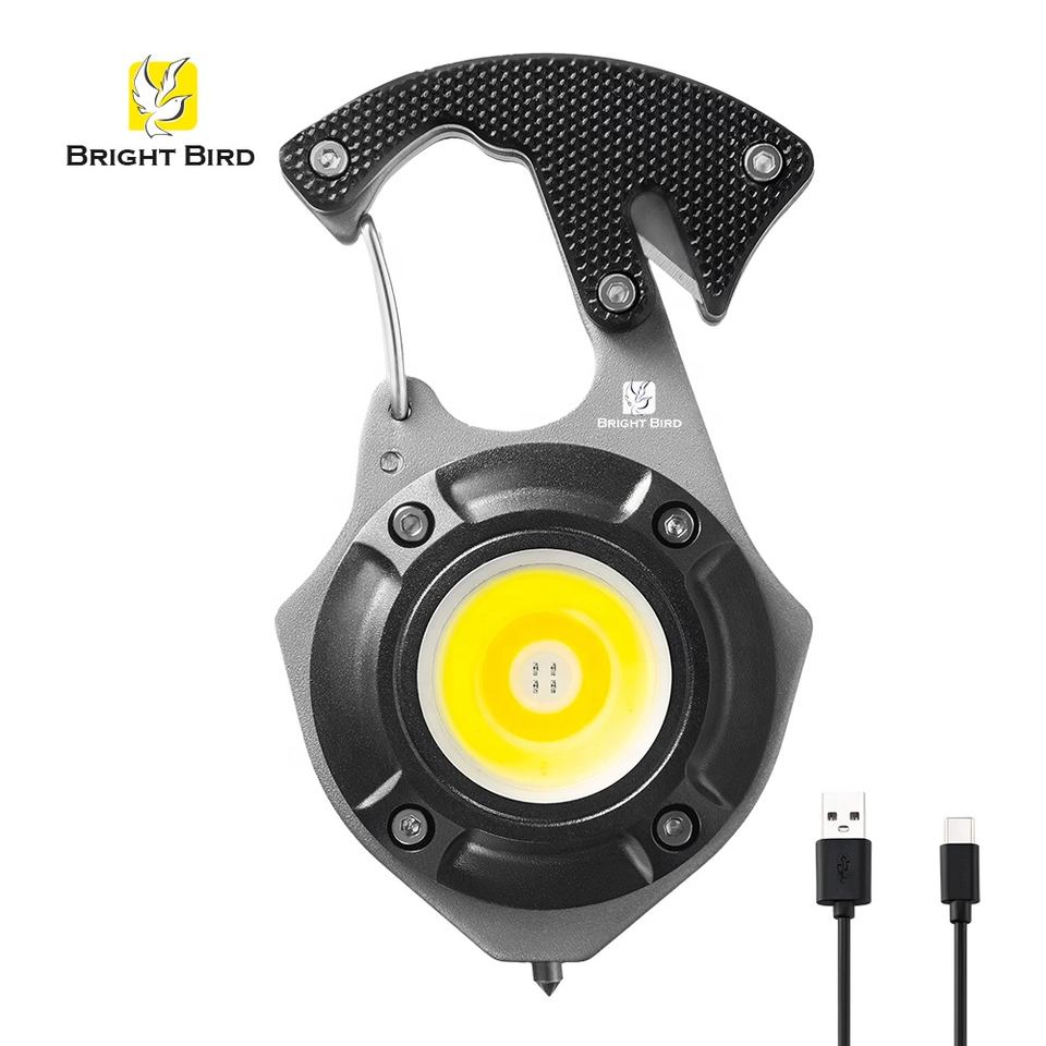 Luz de trabajo portátil para llavero para camping, pequeña linterna impermeable para exterior, COB recargable LED para llavero con herramienta