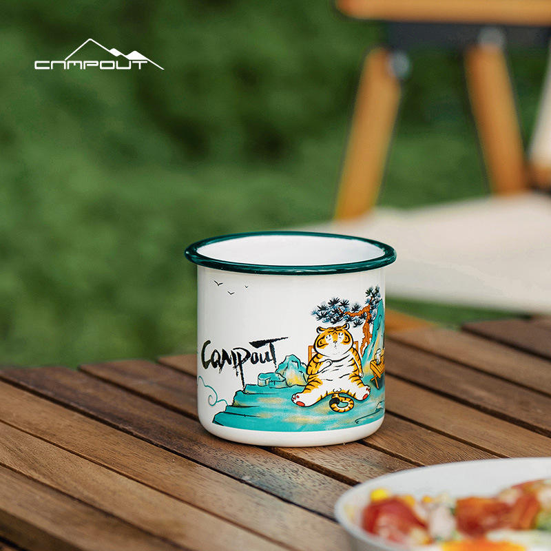 Taza de camping apilable cilíndrica de esmalte para exteriores Campout, taza de agua con borde enrollado engrosado, regalo personal