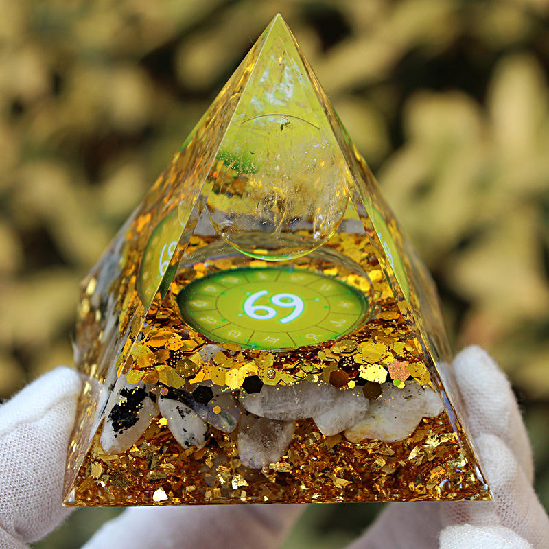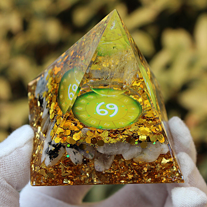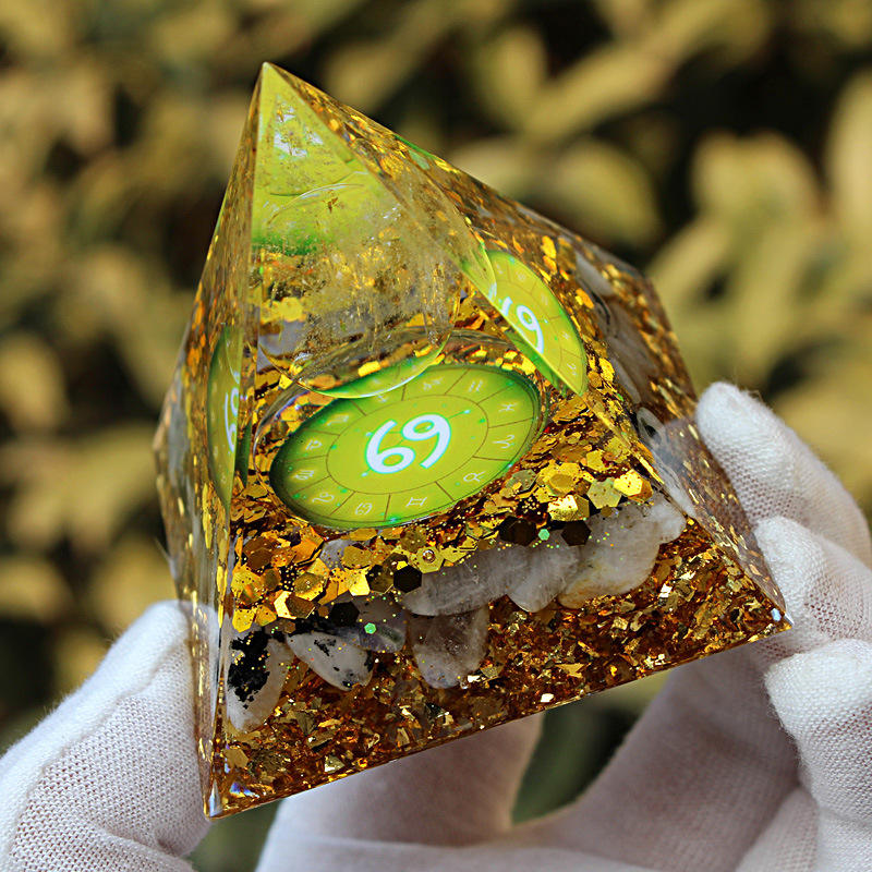 Pirámide de Resina del Signo Zodiacal Cáncer con Hojas de Oro e Inclusiones de Cristal para Decoración del Hogar u Oficina