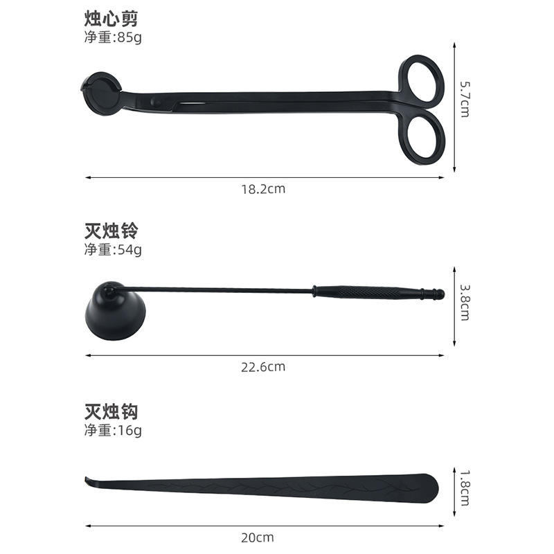 Juego de accesorios para velas 3 en 1, cortador de mechas de acero inoxidable, kit de herramientas para apagar velas, negro, plateado, dorado, oro rosa