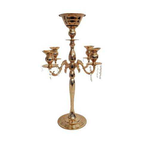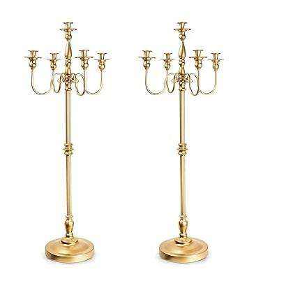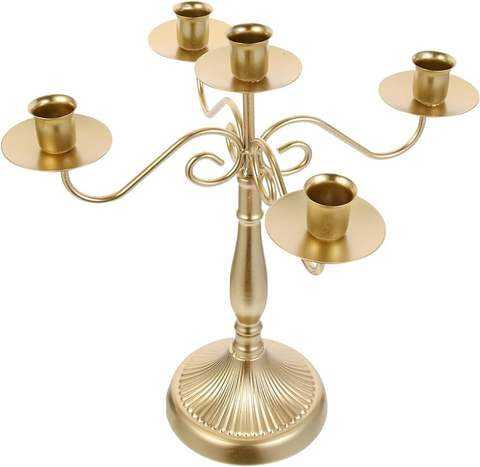 Candelabro de 5 Brazos, Color Dorado Personalizado, Candelabro Dorado Mate para Bodas, Candelabro Metálico Decorativo de 5 Brazos