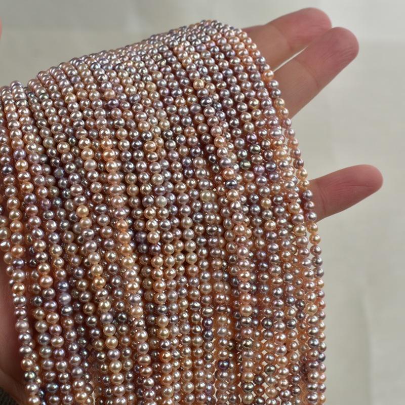 Perlas de Agua Dulce Naturales de Color Caramelo de 3-4 mm, Cuentas Hechas a Mano para DIY, Material Semiterminado para Collares, Perlas Sueltas al por Mayor