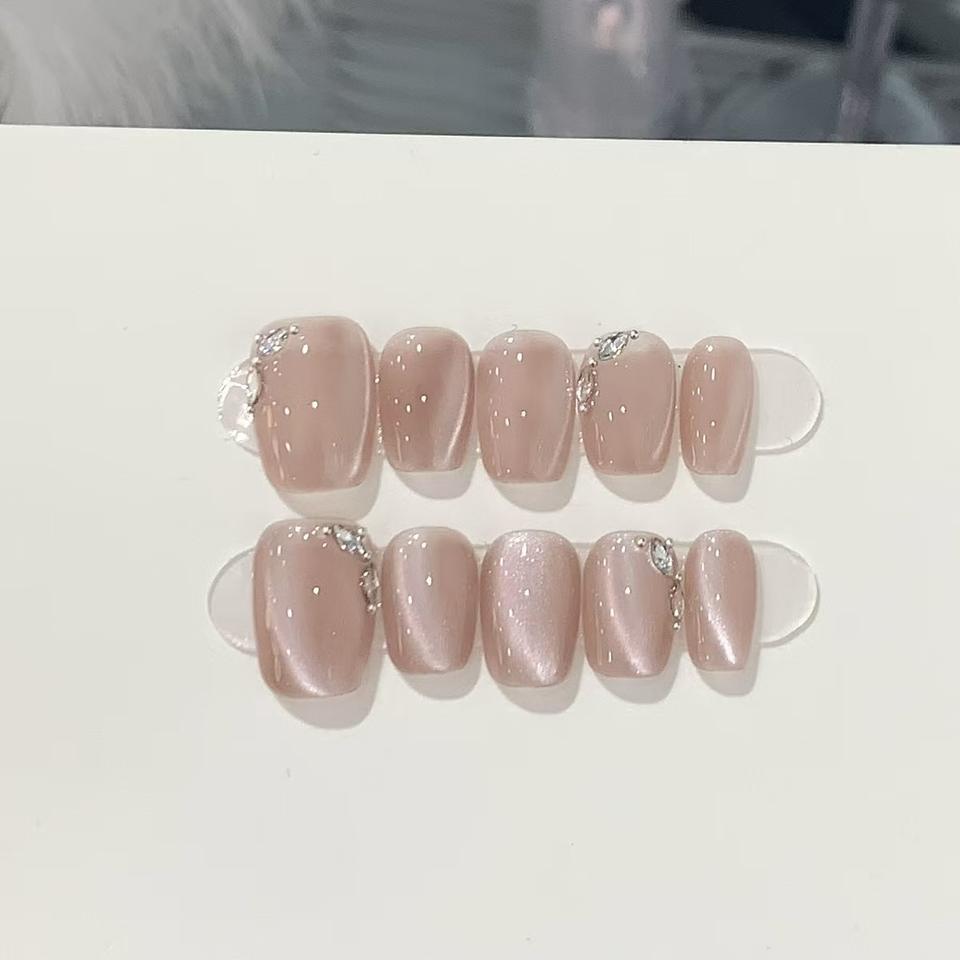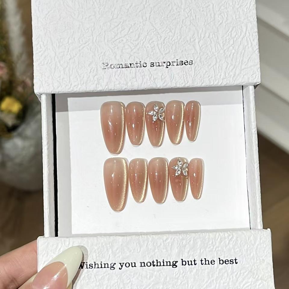 Color caramelo ojo de gato estilo francés 10 Uds hermosas Uñas acrílicas hechas a mano venta al por mayor uñas postizas diseñador prensa en las uñas