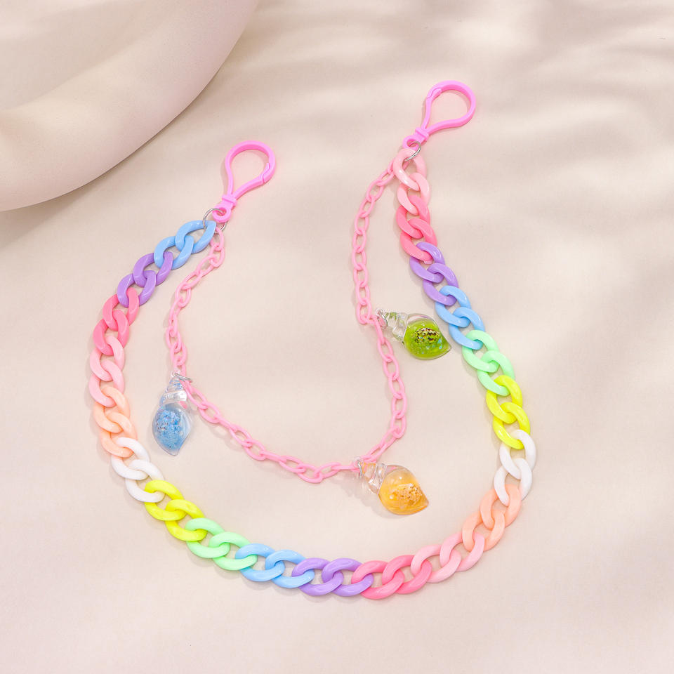 Cadena de cintura de doble capa color caramelo con colgante de resina de caracol para uso diario, accesorio de cadena corporal de plástico.