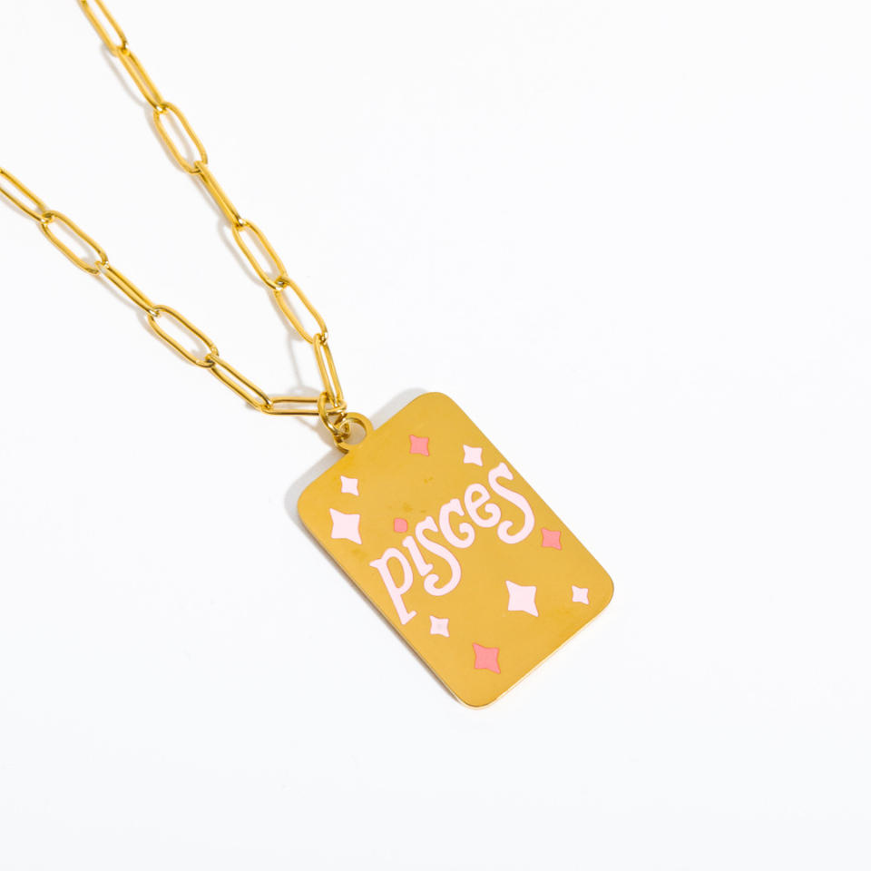 Candy Color Dripping Oil 12 collar del zodiaco Tarot Colgante clavícula Cadena Titanio acero 18K placa de oro