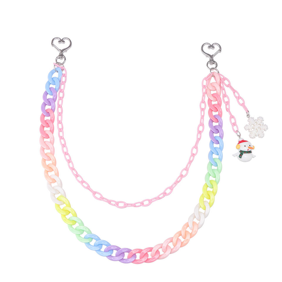 Cadena de Pantalones de Doble Capa de Resina Color Caramelo con Colgante de Muñeco de Nieve y Copo de Nieve, Cadena de Cintura Navideña Estilo Hip Hop Unisex para Adultos