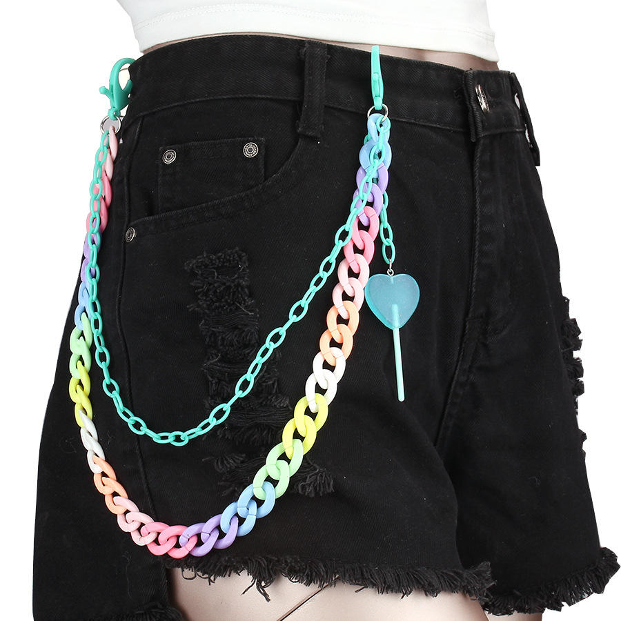 Cadena de cintura de resina color caramelo, doble capa, con colgante de corazón y piruleta, unisex, a la moda, accesorio para fiestas