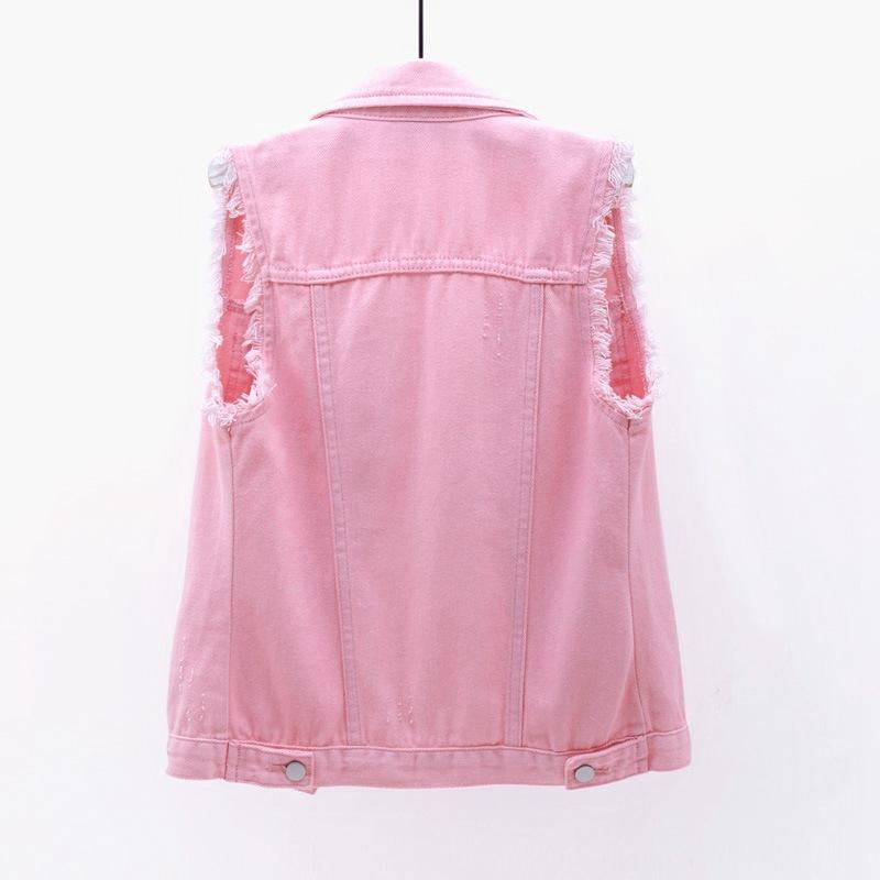Chalecos Vaqueros Casuales para Mujer, sin Mangas, con Botones, Borde sin Rematar, Color Caramelo, a la Moda