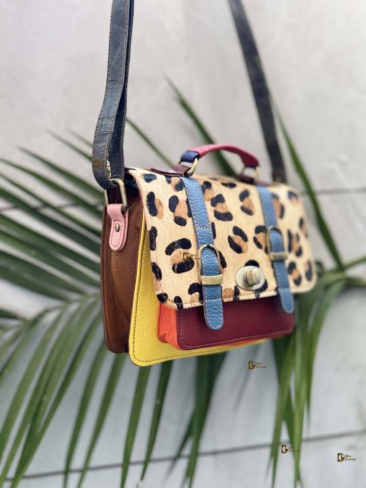 Bolso bandolera multicolor de estilo bohemio ligero de cuero reciclado con patrón de caramelo para mujer con forro de cuero genuino