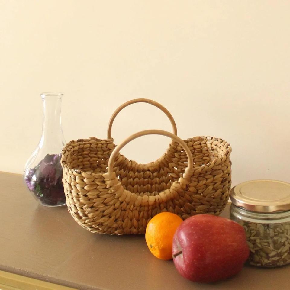 Cesta tejedora con mango de caña, jacinto de agua:Tamaño: L9 x A6,5 x H6,5 pulgadas