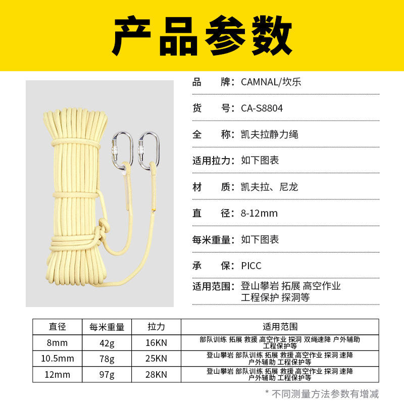 Cuerda de Rapel Estática de Kevlar Canle de 10.5 mm, Equipo de Rescate de Seguridad Ignífugo, Equipo de Escalada