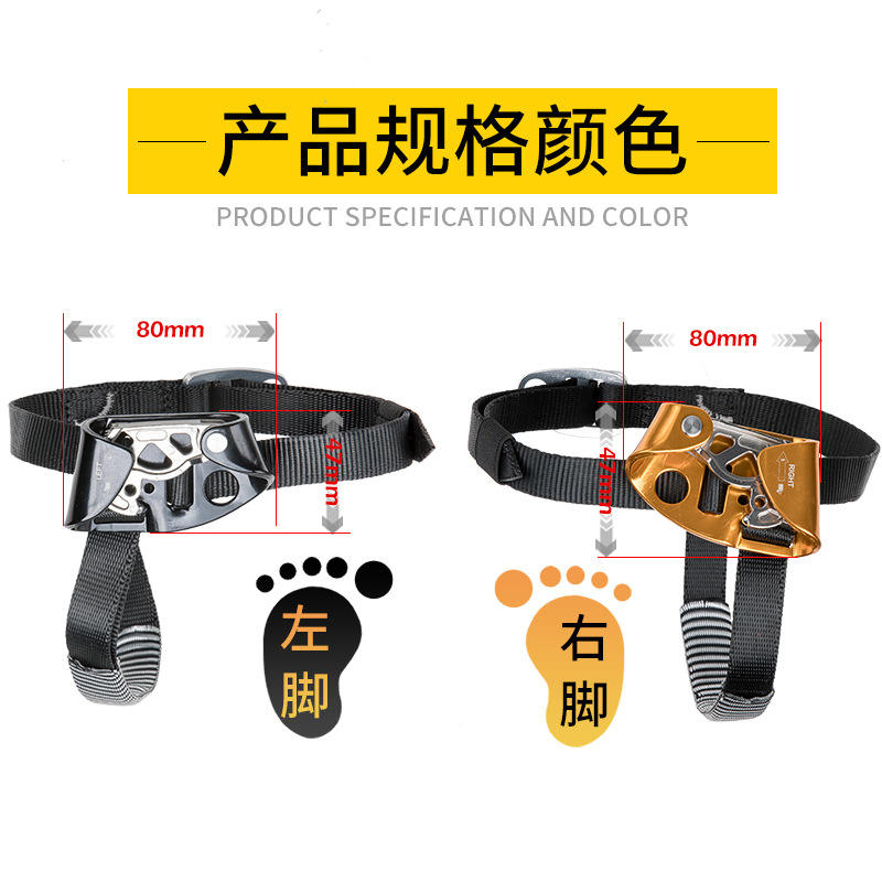 Ascendedor de pie derecho Canle con agarre de cuerda dorado para equipo de escalada y exploración de cuevas