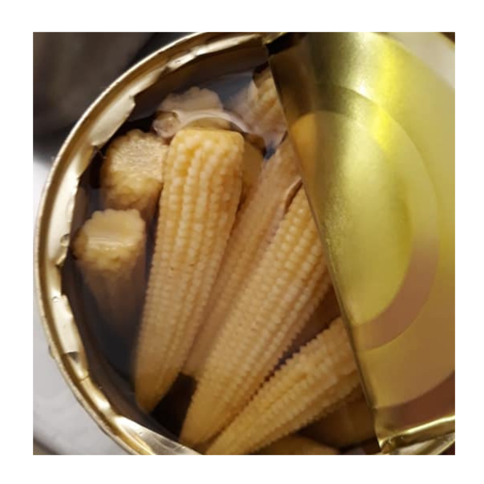 Maíz bebé fresco, agua, sal, azúcar, ácido acético,