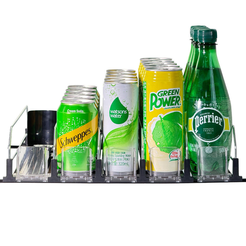 Dimensiones personalizables: Con un ancho y largo personalizables, el organizador de bebidas puede adaptarse a las dimensiones específicas de un refrigerador o estante, optimizando el uso del espacio y la versatilidad.