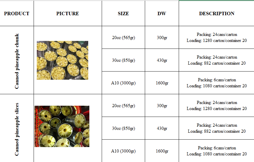 Piña en rodajas y trozosEspecificación