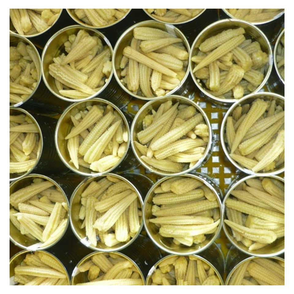 Raw material:Fresh baby corn, Water, Salt, Sugar, Acetic Acid