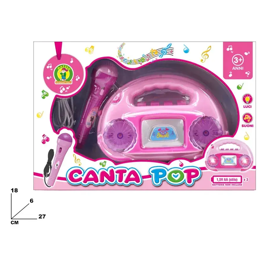 Máquina de karaoke Canta Pop Toy con micrófono, luces y música para niños mayores de 3 años, color rosa